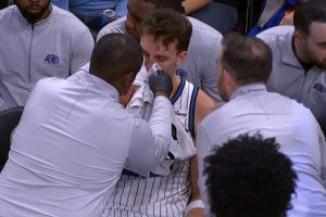 GIF-小瓦格纳被卡马拉肘到鼻子,下场接受治疗!
