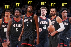 当你的球队拥有申京和杜兰特这样的球员时,这可能很难想象。然而,由于阵容的构建方式,火箭队在场上拥有许多长臂球员,能够整场比赛给对方进攻球员带来困扰。超过一半的球员臂展达到7英尺(2米13)。