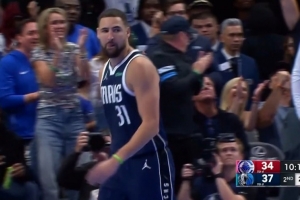 被逮个正着!小佩顿溜底线上篮被东契奇补防大帽拒绝