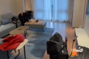 外援杰曼晒北京首钢为他全家准备的公寓:两室两厅,两个卫生间,开放式厨房。