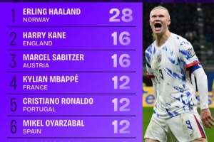 1.埃尔林·哈兰德(挪威),28次