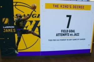 詹姆斯生涯单场出手不超7次纪录: