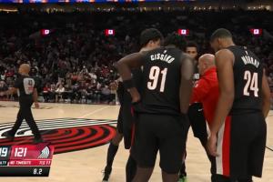 本场比赛最后一个暂停期间,开拓者助教内特-比约克格伦接过教鞭为球队安排战术,与球员交流安排细节,主教练斯普利特则在一旁观看。