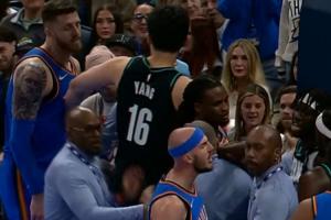 GIF-雷霆开拓者冲突 杨瀚森过来把哈滕劝走