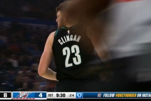 打嗨咯!库明加疾速反击 垫步起飞轻松来个单臂大风车暴扣!