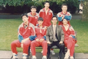 上世纪八十年代,郭玉佩(前排右二)与国青男篮出国比赛。前排右一为中国篮球名人堂成员巩晓彬,后排右二为中国篮球名人堂成员胡卫东。