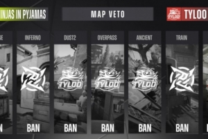 回到长枪回合,NIP三打五下管道去B下包拿分,随后外场Jee大狙首杀Snappi后被sjuush手撕,TYLOO回防稍慢次回合eco,双方比分战平。