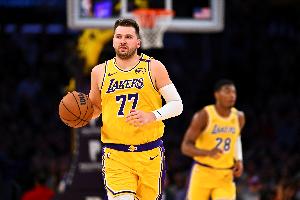 GIF-东契奇四分卫长传助攻八村塁轻松快攻得分