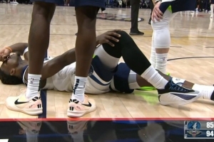 GIF-爱德华兹撞到膝盖,调整后继续作战