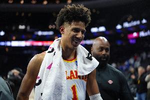 上半场,老鹰球员杰伦·约翰逊表现出色,18分钟10中5,其中三分2中1,砍下11分10篮板12助攻2抢断,正负值+18,仅用半场就砍下了三双数据。