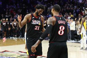 此役,恩比德(右脚踝扭伤、右膝伤病管理)缺阵,保罗·乔治(左膝伤病管理)大概率出战,比彻姆(G联盟)小概率出战。
