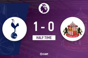 第30分钟,热刺左侧角球开到禁区,罗梅罗后点打到门前,范德芬小禁区线上打门,本-戴维斯顺势垫射破门!热刺1-0桑德兰↓