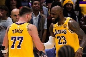 本场比赛詹姆斯砍下30分8篮板8助攻2抢断1盖帽,东契奇砍下30分10助攻2抢断。