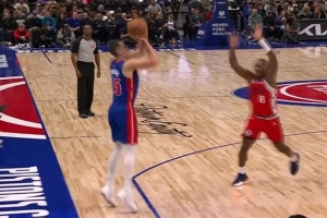 没收住!哈珀防守布伦森被认定垫脚 吹一级恶意犯规