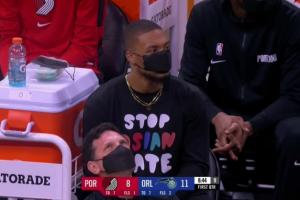 相关链接→利拉德身着“停止仇视亚裔”T恤观战 林书豪感谢其支持