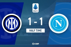 体育资讯1月12日讯 北京时间3:45,意甲第20轮国际米兰vs那不勒斯。上半场,迪马尔科小角度破门,麦克托米奈扳平比分!半场结束,双方暂时1-1战平。