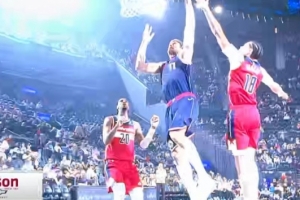 一飞冲天!文班虚晃点起唐斯 滑翔双手暴扣虐筐