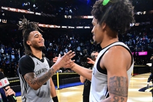 一飞冲天!文班虚晃点起唐斯 滑翔双手暴扣虐筐