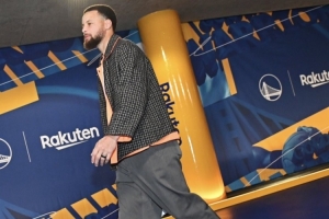 体育资讯1月20日讯 今天勇士主场迎战热火,赛前库里走进球员通道。