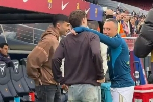 41岁的卡索拉目前效力于皇家奥维耶多,本场替补待命,赛前他也与巴萨球员佩德里、加维、费兰等热络聊天。