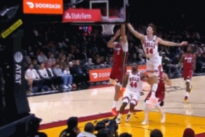 GIF-约维奇反击拉杆上篮 布泽利斯飞身抓帽并控制球权