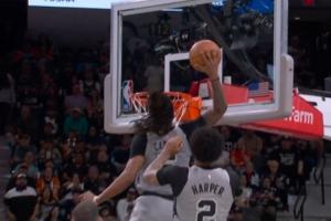詹姆斯一次快攻两次推翻勇士球员 女裁判就在一旁未响哨