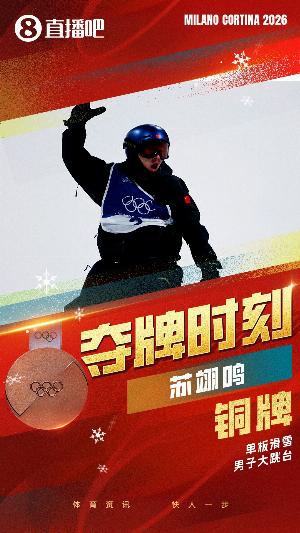 2月8日,单板滑雪男子大跳台决赛,苏翊鸣在单板滑雪男子大跳台项目三跳1980,总分168.5分摘铜,收获中国队本届冬奥会首枚奖牌!
