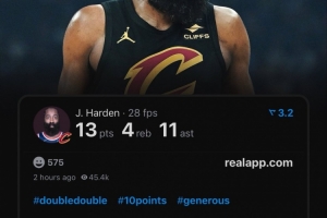 据统计,加盟骑士后的前三场比赛,哈登已累计得到58分16篮板26助攻,并列成为队史最快达成50+分和25+助攻的球员。