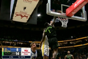 一飞冲天!文班虚晃点起唐斯 滑翔双手暴扣虐筐