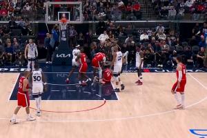 直接空了!波斯特前场篮板假传晃晕两人双手炸扣