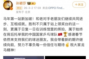 新年首冠!孙颖莎社媒:带着新的期许继续向前,不辜负信任与期待