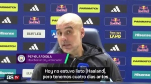 欧洲中部时间3月7日21点,曼城将在足总杯中对阵纽卡,同时4天后就要奔赴伯纳乌迎来欧冠1/8决赛首回合较量。瓜迪奥拉表示:“我现在无话可说,哈兰德今天还没准备好出场,我们在对阵诺丁汉森林前有4天休息,之后只隔3天就要在晚上20点踢对阵纽卡的足总杯。非常感谢这样的赛程安排,让我们能带着更少的恢复时间,‘更好地’备战皇马。”