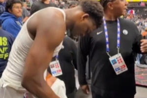 望无大碍!火记:阿门离场走回更衣室 坐在板凳席一直在摸右脚踝