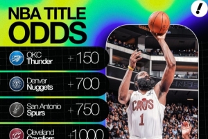 夺冠赔率:雷霆+150第1 掘金2&马刺3 骑士+1000第4 火箭+2800第8