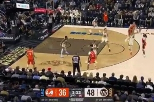 歪打正着!马瑟林持球强攻 双方拼抢中将球点进篮筐