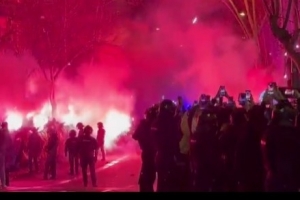 体育资讯3月4日讯 据科贝电台报道,在前往诺坎普途中,马竞大巴遭到巴萨极端球迷投掷物品袭击,这导致大巴车窗破裂。