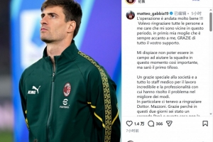 体育资讯3月4日讯 米兰后卫加比亚更新社媒动态,确认已成功接受腹股沟疝手术。