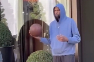体育资讯9月8日讯 近日杜兰特现身巴黎街头,他穿搭简约且气质独特,等待时也不忘玩会球。