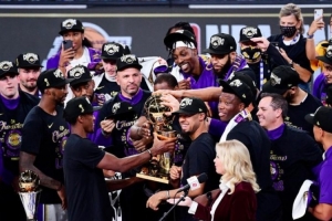 三巨头同时入镜!湖人发布赢球海报:老詹小里击掌瞬间成为封面