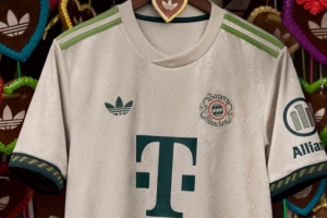 这款新球衣灵感来源于年初庆祝俱乐部成立125周年的纪念球衣,融合了巴伐利亚的价值观和现代优雅:高贵的米白色、绿色刺绣袖口以及类似于125周年纪念球衣的结构,使其成为传统与独特性的完美结合,是所有拜仁球迷的真正宣言。