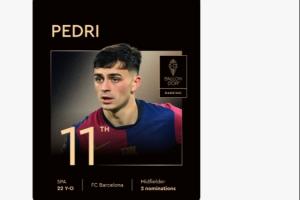 体育资讯09月23日讯 2025年金球奖颁奖典礼在北京时间今天凌晨进行,佩德里仅排在第11位。