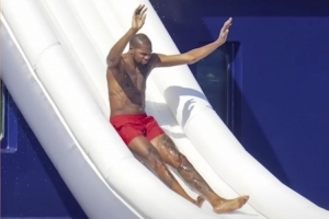 女主持人:“休赛期我没看到任何游艇滑梯的狗仔照。我有点失望。”