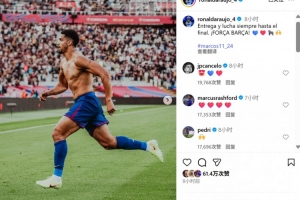 赛后阿劳霍也在社媒晒出进球后脱衣庆祝的照片,配文写道:“永远拼尽全力并坚持到最后一刻,加油巴萨!”