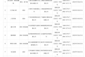 体育资讯10月22日讯 国家新闻出版署公布 2025年10月 国产网络游戏审批版号 名单,《明日方舟》客户端、《太吾绘卷:天幕心帷》《凹凸世界:彩虹收藏家》《三国杀正面对决》《群星:银河歌剧》等 159 款游戏过审。