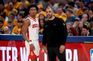 阿门在前两场比赛中场均得到14分、3次助攻,同时也有3次失误。尽管申京和杜兰特也能协助组织进攻,但阿门仍在适应比过去两个赛季更多持球的节奏。