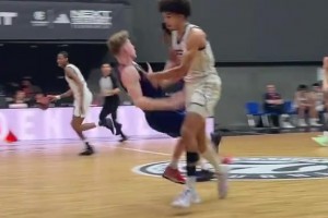 一飞冲天!文班虚晃点起唐斯 滑翔双手暴扣虐筐