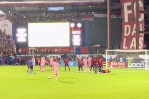 莱奥推射遭对手门线解围,随后裁判示意拉比奥特越位在先