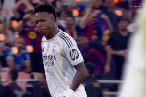这下尴尬了,维尼修斯想彩虹过人,结果失误把球碰出界了