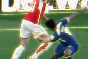 切尔西扳平前,赖斯防守哈托时疑似手球,切尔西球员投诉无果